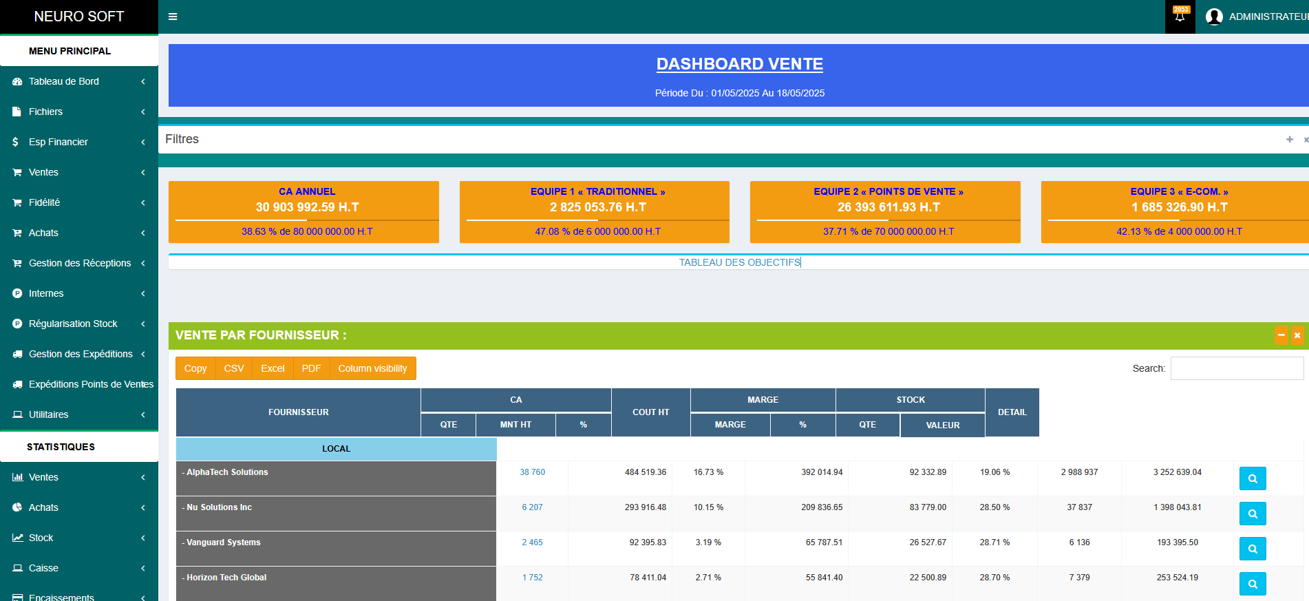 Notre solution complète couvre l'intégralité du processus d'achat, vous permettant de gérer vos fournisseurs, de créer des demandes de devis claires et précises, de passer des commandes structurées et de suivre attentivement les réceptions de marchandises. La gestion des factures fournisseurs est également intégrée, vous offrant une vision claire de vos dépenses.