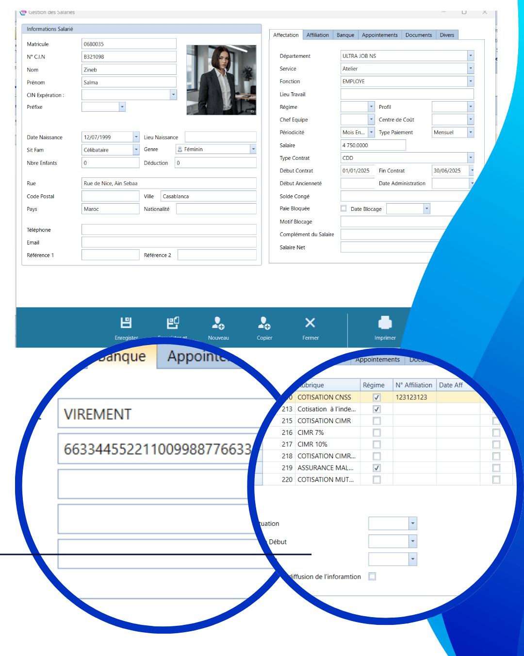 - Contrôle des plafonds légaux pour les cotisations sociales (CNSS, etc.) et les impôts.