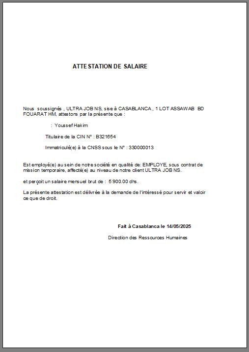 - Création de certificats de salaire détaillés pour les demandes de prêt, les justifications de revenus, etc.