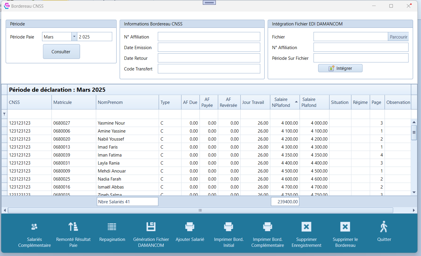 - Génération des fichiers de déclaration CNSS au format DAMANCOM.